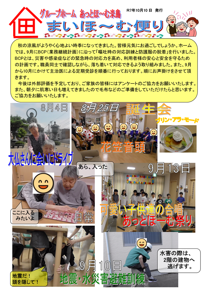 まいほ~む便り(グループホーム あっとほ~む米島)~10月発行~
